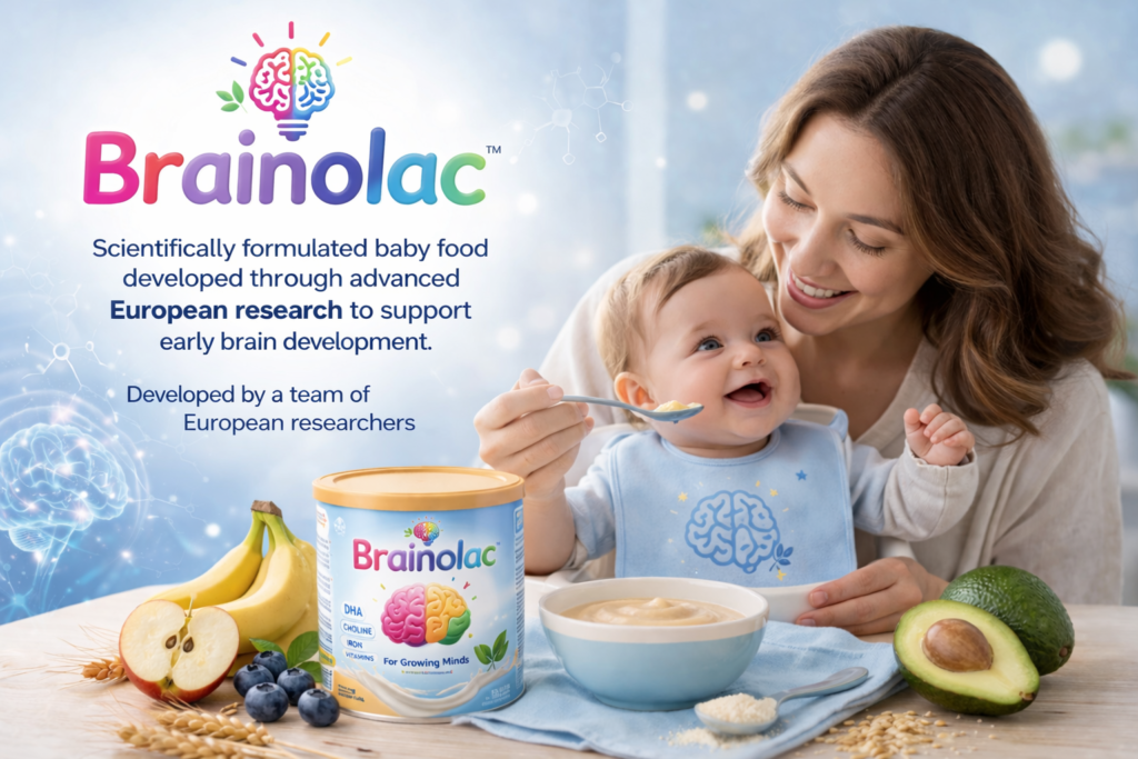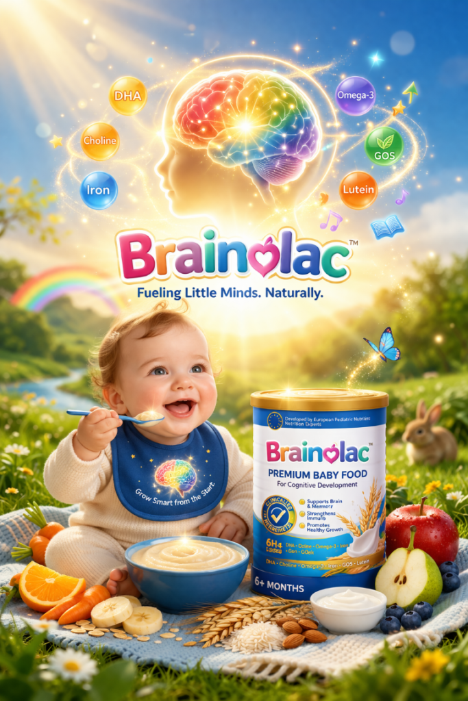 Brainolac is a scientifically formulated baby food developed by advanced European Fellow researcher to support early brain development. Created by a team of research experts, Brainolac delivers essential nutrients that nurture cognitive growth, memory formation, and overall mental wellbeing—giving your child the strongest foundation for a brighter future.